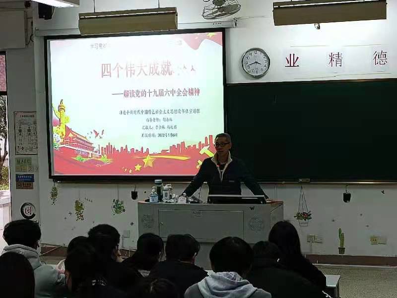 2022年1月6日下午,習(xí)近平新時(shí)代中國(guó)特色社會(huì)主義思想讀書(shū)社宣講團(tuán)在胡濟(jì)林老師的組織下,到教學(xué)樓109為21體保301 、21藥學(xué)305、 21藥學(xué)306班開(kāi)展“四個(gè)偉大成就”專(zhuān)題宣講。