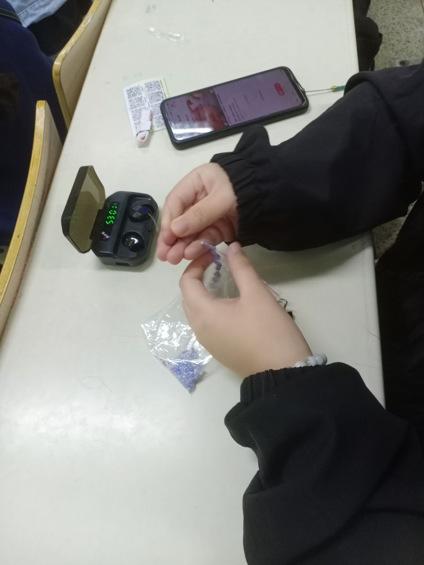 活動(dòng)首先由社團(tuán)干事鄧芳?xì)g對(duì)手鏈編織技藝的來(lái)源與演變進(jìn)行了介紹,并詳細(xì)講解了制作春日手鏈的方法與技巧,隨后社團(tuán)成員根據(jù)講解的制作方法進(jìn)行手鏈編織。同學(xué)們發(fā)揮各自的想象力,將色彩艷麗的珠子匯聚成各式各樣的小雛菊,手繩上不同色彩相交匯,形成晶瑩剔透的手鏈,手鏈花色各異,展現(xiàn)出不同的氣質(zhì)。