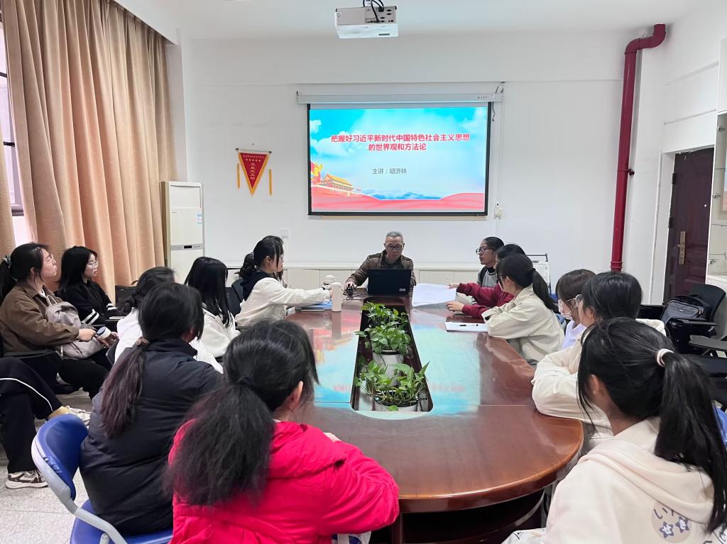 會(huì)議伊始,胡濟(jì)林副教授進(jìn)行“把握好習(xí)近平新時(shí)代中國(guó)特色社會(huì)主義思想的世界觀和方法論”專題報(bào)告,他帶領(lǐng)同學(xué)們學(xué)習(xí)了黨的二十大報(bào)告“繼續(xù)推進(jìn)實(shí)踐基礎(chǔ)上的理論創(chuàng)新,強(qiáng)調(diào)要把握好新時(shí)代中國(guó)特色社會(huì)主義思想的世界觀和方法論,堅(jiān)持好、運(yùn)用好貫穿其中的立場(chǎng)觀點(diǎn)方法”的重要論斷。接著,他從“必須堅(jiān)持人民至上”、“必須堅(jiān)持自信自立”、“必須堅(jiān)持守正創(chuàng)新”、“必須堅(jiān)持問(wèn)題導(dǎo)向”、“必須堅(jiān)持系統(tǒng)觀念”、“必須堅(jiān)持胸懷天下”等六個(gè)方面重點(diǎn)闡釋習(xí)近平新時(shí)代中國(guó)特色社會(huì)主義思想的世界觀和方法論。