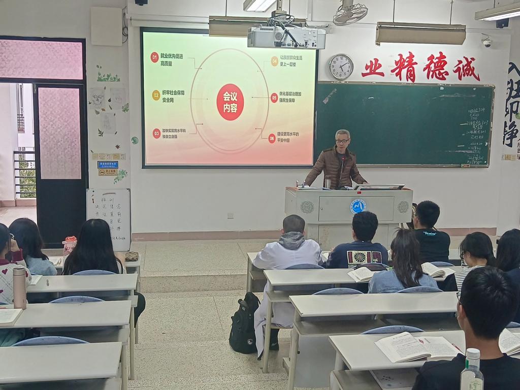 今年的全國(guó)兩會(huì)是在全面貫徹落實(shí)黨的二十大精神開局之年、踏上實(shí)現(xiàn)第二個(gè)百年奮斗目標(biāo)新征程的重要時(shí)刻召開的盛會(huì),是全國(guó)人民政治生活中的一件大事,2023年3月21日,習(xí)近平新時(shí)代中國(guó)特色社會(huì)主義思想讀書社宣講團(tuán)成員在胡濟(jì)林老師的組織下,到教學(xué)樓209為22檢驗(yàn)301、302班、22藥品質(zhì)量與安全301班同學(xué)開展線下宣講交流。