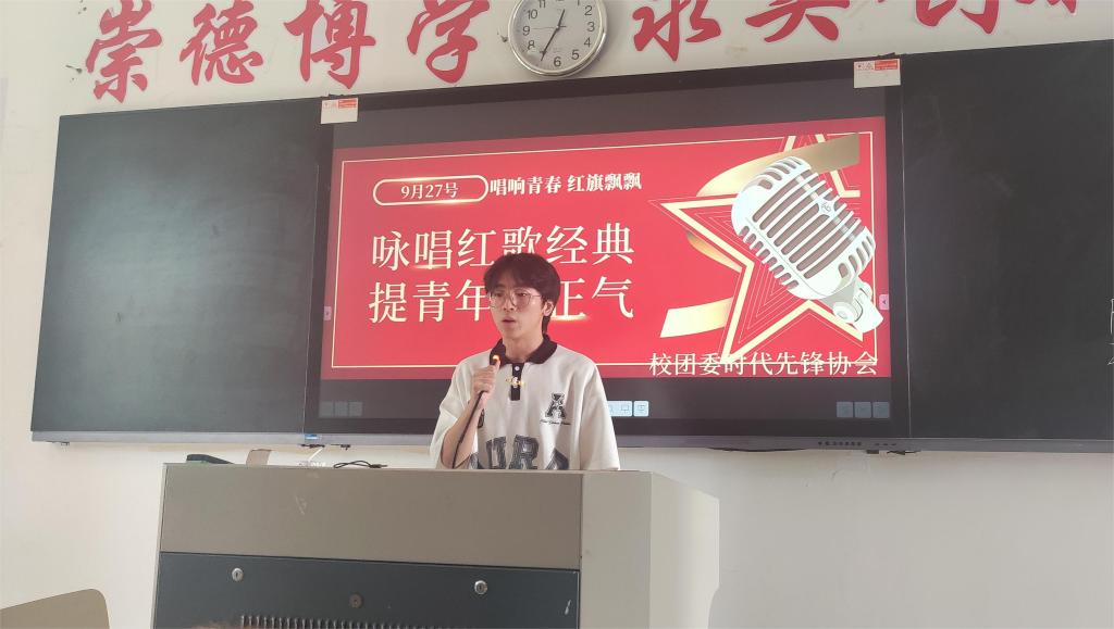 百年風(fēng)雨兼程,百年歲月如歌。紅歌旋律催人奮進(jìn),紅歌精神激勵斗志。時代先鋒協(xié)會于2023 年9月27日在教學(xué)樓102舉辦“詠唱紅歌經(jīng)典,提青年之正氣”青年歌唱大賽。