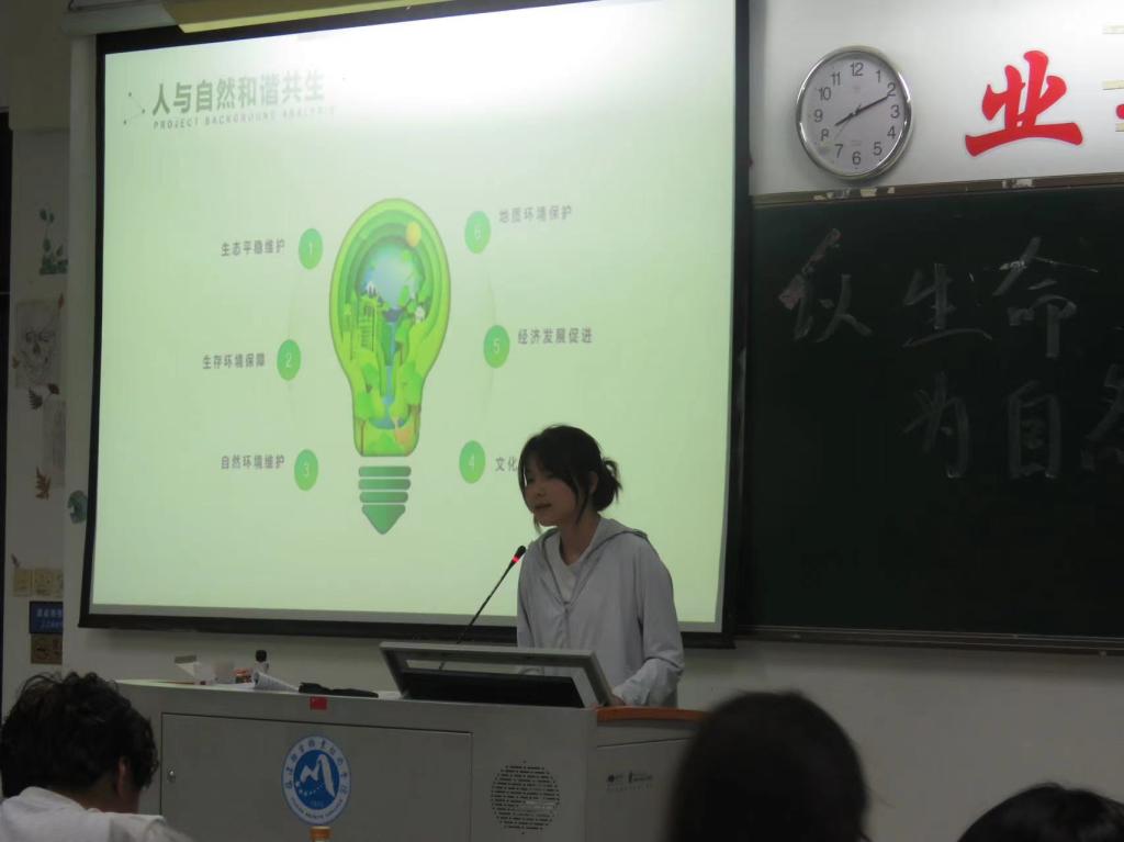 演講的現(xiàn)場,同學們的手勢伴隨著重點的強調(diào),時而揮動,時而攤開手掌,似乎在無聲地展示他的想法和情感,讓大家意識到環(huán)境問題的嚴峻性已經(jīng)到了不容忽視的地步。氣候變化導(dǎo)致的極端天氣事件頻發(fā),生物多樣性的喪失使得生態(tài)系統(tǒng)的穩(wěn)定性受到威脅。演講中,部分同學用事實和數(shù)據(jù)闡述了環(huán)境保護的緊迫性,臺下的同學則是不時點頭,表示贊同或是被某個觀點打動。