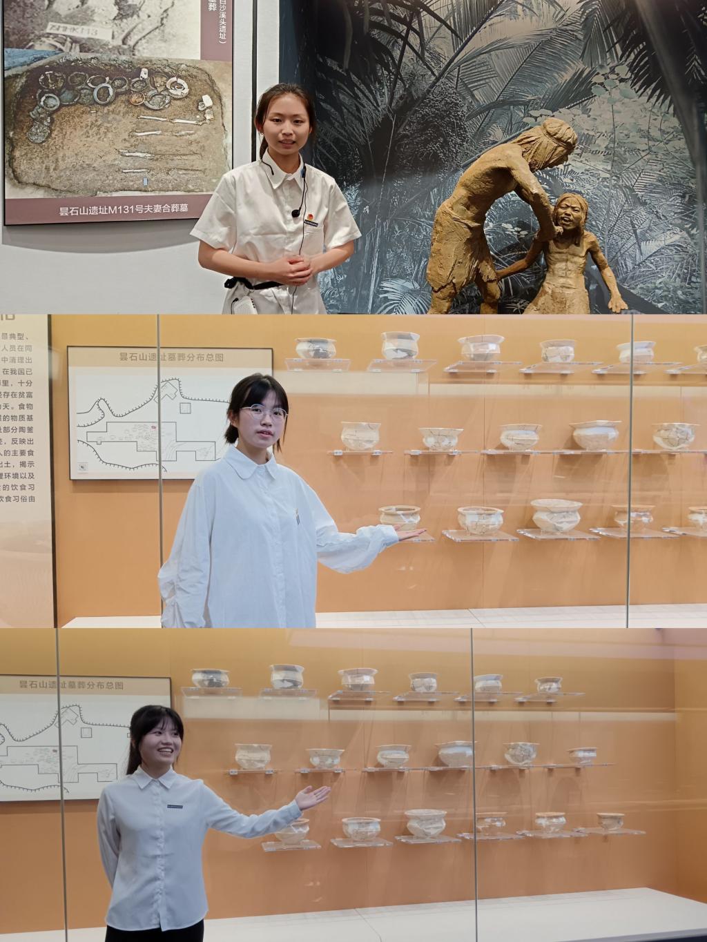 7名選手秉承用考古成果講好中華文明故事的理念,借助多媒體展廳,結(jié)合館內(nèi)珍貴的考古發(fā)掘現(xiàn)場(chǎng)照片和館藏文物進(jìn)行志愿講解,直觀地展現(xiàn)了五千年來(lái)閩地海陸變遷的情況,為從全新視角理解先秦閩族文化、福建文明史提供了史料支撐。在她們引人入勝的講述下,一幅幅曇石山先民采貝海濱、逐鹿山林、搏擊風(fēng)浪、生生不息的動(dòng)人畫卷徐徐展開,令在場(chǎng)師生、游客在尋古探閩的過(guò)程中,以考古之光照見中華文明的根與魂。