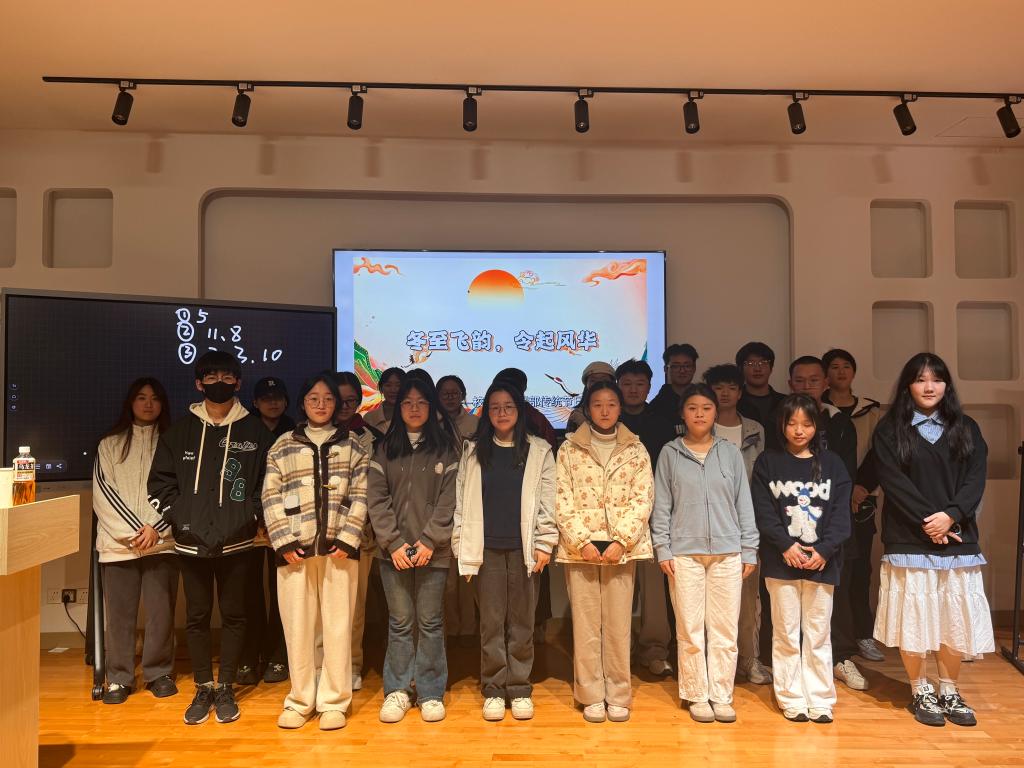 冬至,作為冬季的重要時令標識,在歲月的長河中承載著深厚的文化底蘊。詩詞文化于華夏大地源遠流長,飛花令則是這文化星空中一顆璀璨的競技與趣味兼具的明珠。值此冬至佳節(jié),傳統(tǒng)節(jié)日研習(xí)社于2024年12月9日在“一站式”學(xué)生社區(qū)師生活動中心合唱室成功舉辦了此次慶祝冬至活動,以節(jié)氣為紐帶,以飛花令為舟楫,引領(lǐng)同學(xué)們在詩詞的平仄韻律間,探尋那久違的靜謐與美好。