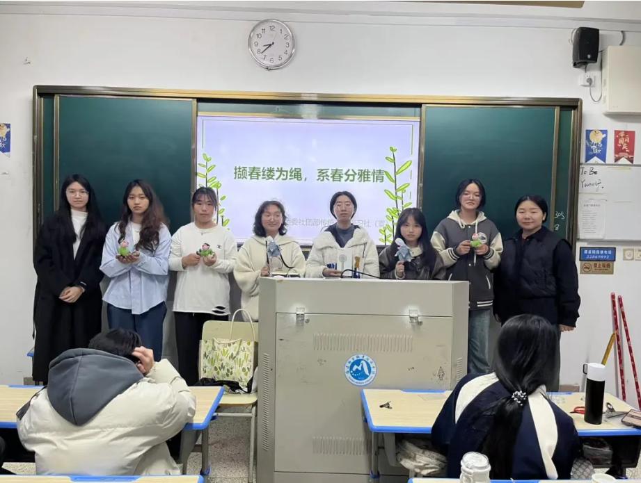 2023年6月,習近平總書記在文化傳承發(fā)展座談會上的講話中指出:“只有全面深入了解中華文明的歷史,才能更有效地推動中華優(yōu)秀傳統(tǒng)文化創(chuàng)造性轉(zhuǎn)化、創(chuàng)新性發(fā)展,更有力地推進中國特色社會主義文化建設(shè),建設(shè)中華民族現(xiàn)代文明?!睘榱烁行У赝苿又腥A優(yōu)秀傳統(tǒng)文化創(chuàng)造性轉(zhuǎn)化、創(chuàng)新性發(fā)展,助力傳統(tǒng)文化在大學(xué)校園里生根發(fā)芽、傳承發(fā)揚,我校傳統(tǒng)節(jié)日研習社于2025年3月18日在崇教樓301舉辦了以“擷春縷為繩,系春分雅情”為主題的花繩編織活動。
