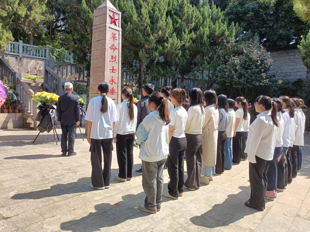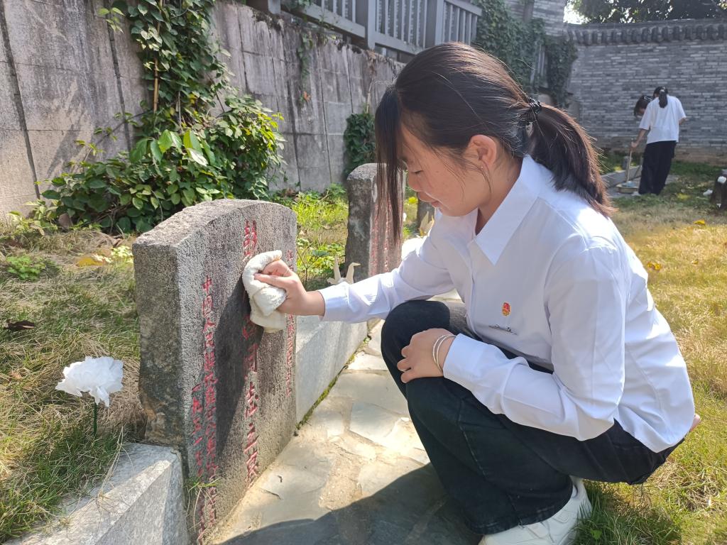 默哀后,師生代表先后發(fā)言。教師代表胡濟林強調(diào)要銘記歷史,珍惜來之不易的和平生活,將紅色精神代代相傳,為建設中國特色社會主義現(xiàn)代化強國而奮斗。學生代表林俐表示要向革命先烈學習,傳承紅色精神,努力學習,做社會主義建設者和接班人。 隨后,同學們紛紛拿起工具,清掃陵園地面的落葉與雜物,擦拭烈士墓碑,以實際行動表達對先烈的敬重。