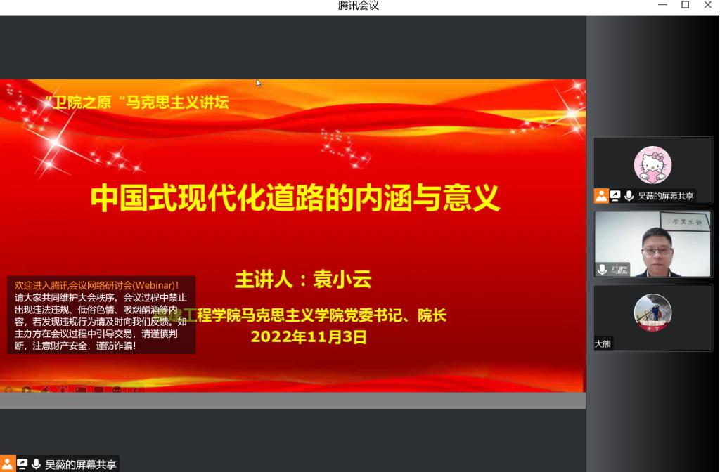 袁小云基于中國式現(xiàn)代化道路的內(nèi)涵、理論意義、實(shí)踐意義、世界意義、中國式現(xiàn)代化道路任重道遠(yuǎn)五個層面,向大家深刻揭示了中國式現(xiàn)代化不僅是黨和人民歷經(jīng)艱辛探索、創(chuàng)新突破取得的寶貴成果,更是我國實(shí)現(xiàn)中華民族偉大復(fù)興的必由之路。專題講座之后,與會師生就深刻理解習(xí)近平總書記在黨的二十大報告中有關(guān)中國式現(xiàn)代化的科學(xué)闡述與專家開展熱烈討論。
