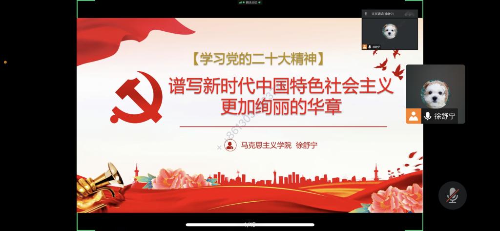 2022年11月14日,馬克思主義學(xué)院徐舒寧老師為22康復(fù)301-302班學(xué)生和演講與辯論社社團(tuán)成員開展了以“譜寫新時(shí)代中國特色社會(huì)主義更加絢麗的華章——學(xué)習(xí)黨的二十大精神”為主題的宣講。此次活動(dòng)是馬克思主義學(xué)院學(xué)習(xí)貫徹黨的二十大精神系列宣講活動(dòng)之一。