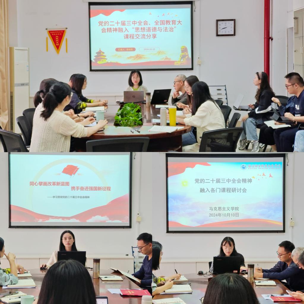 接著,顏冰鳳老師分享了黨的二十屆三中全會(huì)精神融入“思想道德與法治”具體案例,提出要以問(wèn)題為導(dǎo)向,結(jié)合黨的二十屆三中全會(huì)、全國(guó)教育大會(huì)精神和教學(xué)重難點(diǎn)設(shè)置問(wèn)題鏈,精心組合情景式教學(xué)、自主探究、案例分析等多種教學(xué)方式和手段幫助學(xué)生突破教學(xué)重難點(diǎn),提升學(xué)生學(xué)習(xí)實(shí)效。張茵珠老師根據(jù)“形勢(shì)與政策”開學(xué)第一課及校領(lǐng)導(dǎo)關(guān)于學(xué)習(xí)貫徹黨的二十屆三中全會(huì)精神專題內(nèi)容所提建議,結(jié)合近期培訓(xùn)學(xué)習(xí)收獲談到要準(zhǔn)確理解黨和國(guó)家理論政策,通過(guò)科學(xué)嚴(yán)謹(jǐn)?shù)姆椒ㄔ诮虒W(xué)過(guò)程中證明并展示政策的正面效應(yīng)。龍慧老師聚焦“高職醫(yī)學(xué)生職業(yè)發(fā)展與就業(yè)創(chuàng)業(yè)”課程進(jìn)行分享交流,黨的二十屆三中全會(huì)和全國(guó)教育大會(huì)為職業(yè)發(fā)展與就業(yè)創(chuàng)業(yè)指明了方向,將會(huì)議精神融入課程,有利于讓學(xué)生明白當(dāng)前國(guó)家就業(yè)形勢(shì)和政策,引導(dǎo)學(xué)生根據(jù)國(guó)家需要和社會(huì)需求規(guī)劃自己的職業(yè),選擇合適的就業(yè)方向。