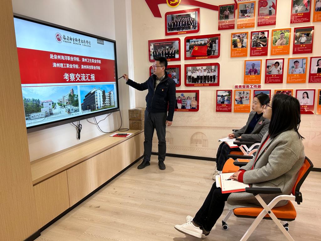 2023年3月2日,宣傳部(文明辦)黨支部召開學(xué)習(xí)會(huì)議。支部書記宋維為支部黨員做考察交流匯報(bào),匯報(bào)赴泉州海洋職業(yè)學(xué)院、漳州衛(wèi)生職業(yè)學(xué)院、漳州理工職業(yè)學(xué)院、漳州科技職業(yè)學(xué)院考察交流成果。