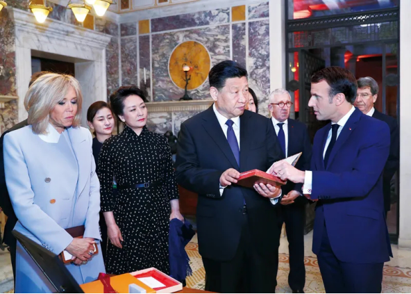 2019年3月24日,習近平在法國尼斯會見法國總統(tǒng)馬克龍。會見前,馬克龍向習近平贈送1688年法國出版的首部《論語導讀》法文版原著。
