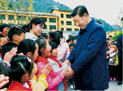 2019年4月15日至17日,習近平在重慶考察并主持召開解決“兩不愁三保障”突出問題座談會。這是15日,習近平在石柱土家族自治縣中益鄉(xiāng)小學同學生們交談。
