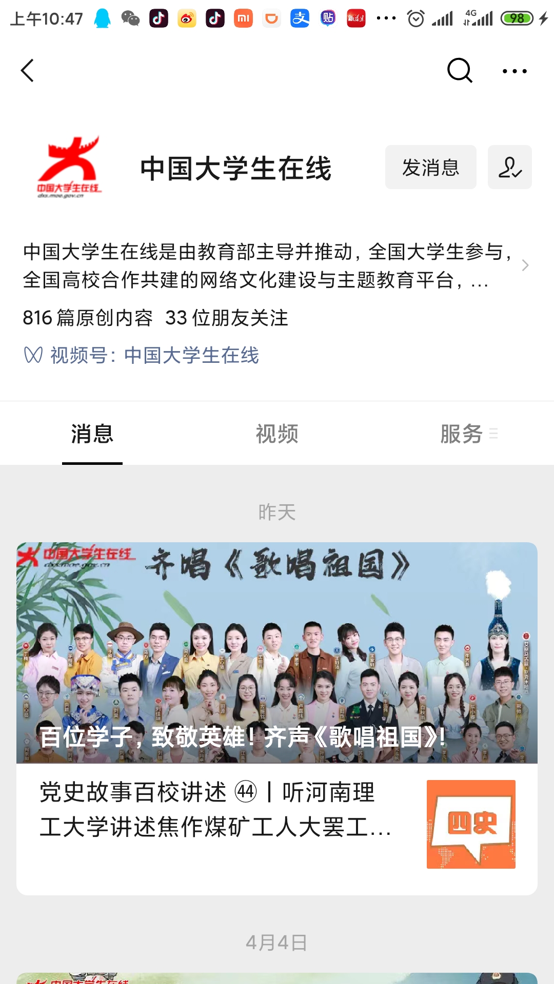 登錄步驟1:請使用手機微信關(guān)注中國大學生在線微信公眾號(dxsmoegovcn)。