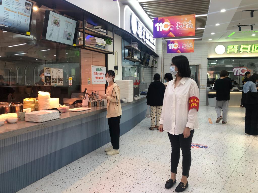 宣傳教育突擊隊(duì)在各個(gè)食堂區(qū)域迅速集結(jié),主動(dòng)開展黨員志愿服務(wù),積極投入到秩序維護(hù)、防疫督導(dǎo)等各項(xiàng)工作中,以實(shí)際行動(dòng)守護(hù)校園安全。