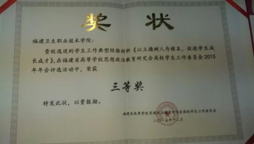 2015年12月,在福建省高等學(xué)校思想政治教育研究會(huì)高校學(xué)生工作委員會(huì)2015年年會(huì)評(píng)選活動(dòng)中,我院學(xué)生工作處葉海處長(zhǎng)選送的學(xué)生工作典型經(jīng)驗(yàn)材料《以立德樹人為根本,促進(jìn)學(xué)生成長(zhǎng)成才》榮獲三等獎(jiǎng)。特此祝賀!