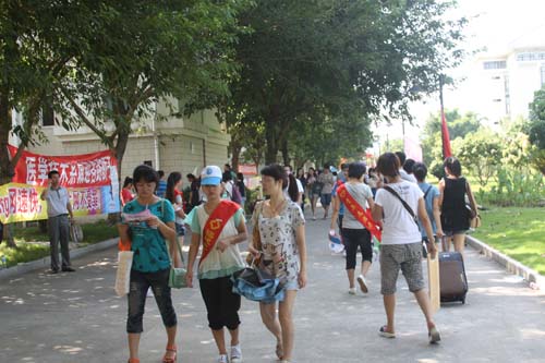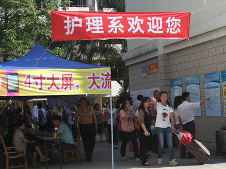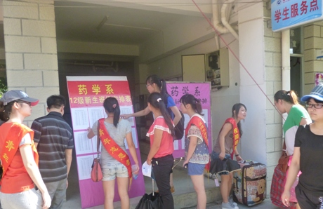 報(bào)到當(dāng)天,學(xué)院為新生提供了方便快捷的服務(wù),在福州火車站、火車南站、汽車南站、北站、洪山橋、西客站等站點(diǎn)設(shè)立新生接待處,迎接新生及家長。負(fù)責(zé)接待工作的志愿者組織新生辦理各項(xiàng)手續(xù),活躍在各迎新點(diǎn)和校園內(nèi),指引新生報(bào)到,幫助新生和家長拿行李,耐心回答他們提出的各種問題。除此之外,各系部積極認(rèn)真的做好新生接待,做到報(bào)到、辦卡、繳費(fèi)等“一條龍”服務(wù),讓同學(xué)們能盡快的熟悉校園環(huán)境。護(hù)理系的迎新志愿者基本上做到一對一的熱情接待,讓家長和新生有種賓至如歸的感覺;藥學(xué)系迎新志愿者頭戴小紅帽,身穿統(tǒng)一的粉色T恤,活躍在校園的每個(gè)角落,有的解答家長咨詢,有的指引新生,幫忙搬運(yùn)行李;臨床系迎新志愿者為新生準(zhǔn)備了迎新三輪車,幫忙從校門口一直送到報(bào)到點(diǎn),家長和新生都感到很開心;醫(yī)學(xué)技術(shù)系迎新志愿者穿著統(tǒng)一的系服,用滿腔熱情堅(jiān)守在各個(gè)接待地點(diǎn),他們展示出醫(yī)學(xué)技術(shù)系學(xué)生良好的精神風(fēng)貌;公共基礎(chǔ)部每一位迎新志愿者身穿“福建衛(wèi)生職業(yè)技術(shù)學(xué)院公共基礎(chǔ)部”綬帶,讓每一位家長和新生找到回家的感覺。報(bào)到當(dāng)天,我院新生報(bào)到率已達(dá)到百分之九十多。