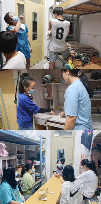當(dāng)晚,輔導(dǎo)員們?nèi)珕T下到宿舍走訪,查看宿舍衛(wèi)生整理狀況,向同學(xué)們宣傳愛國衛(wèi)生運動精神,強調(diào)常態(tài)化疫情防控注意事項,并對宿舍違規(guī)電器等安全隱患進(jìn)行排查,關(guān)心同學(xué)們的學(xué)習(xí)生活狀態(tài)。