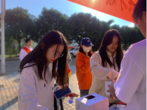 工作人員引導(dǎo)同學(xué)們參加此次捐贈(zèng)物資、填寫問卷,以及集贊兌品,并向同學(xué)們普及資助政策。