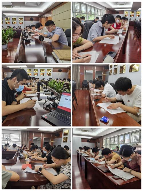 為切實(shí)提高講座的實(shí)效性,會前,學(xué)生工作部組織全體專職輔導(dǎo)員進(jìn)行基礎(chǔ)業(yè)務(wù)知識測試。本次測試作為二級院系選拔的重要環(huán)節(jié),采用閉卷的方式,內(nèi)容主要涵蓋了思想政治教育理論知識、黨史知識、輔導(dǎo)員業(yè)務(wù)素質(zhì)、心理健康教育知識、疫情防控等內(nèi)容,包括單選題、不定項(xiàng)選題、簡答題、對策分析題,旨在全面考察輔導(dǎo)員的業(yè)務(wù)水平和綜合素質(zhì)。學(xué)生工作部安排專人監(jiān)考,副校長黃銘珊來到測試現(xiàn)場巡考。