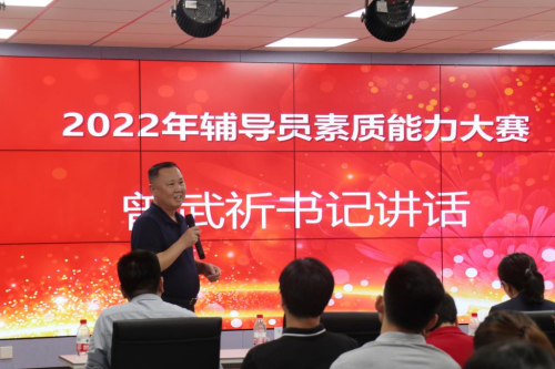 大賽最后,曾武祈向獲獎選手們表示衷心的祝賀和肯定,對與會評委精彩、精辟、精準的點評表示感謝。他強調(diào),輔導員隊伍是思政工作的排頭兵和主力軍,使命光榮同時責任重大,輔導員素質(zhì)能力大賽是輔導員工作風采的集中展示和對這支隊伍全方位的考核。他希望賽事越辦越好,選手們能走出校園,走上省賽、國賽的更大舞臺。他向?qū)W生管理和輔導員隊伍提出三點殷切期望:一要提升政治素養(yǎng),加強理論學習,為黨育人為國育才,做學生成長成才的指導者和引路人;二要練就過硬本領(lǐng),做到能承天接地,理論思想能入腦入心,踐行于工作實際,搭建好與學生間的橋梁,營造風清氣正的良好氛圍;三要通過舉辦比賽推進工作,推動隊伍建設(shè),總結(jié)經(jīng)驗,檢驗工作。