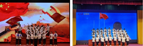 朗誦及大合唱《初心》講述了中國(guó)革命精神之源——“紅船精神”;舞蹈《一起向未來(lái)》激勵(lì)學(xué)子們?yōu)閷?shí)現(xiàn)中華民族偉大復(fù)興中國(guó)夢(mèng)砥礪奮斗。