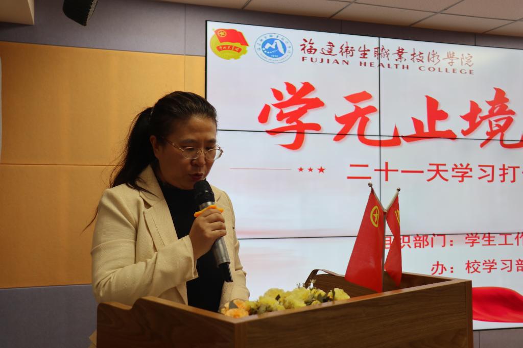 頒獎儀式上,學(xué)生工作部副部長張麗萍宣讀本次活動獲獎學(xué)生名單。獲獎學(xué)生代表22康復(fù)302班黃曉玲分享學(xué)習(xí)打卡活動心得,她表示,21天的學(xué)習(xí)打卡活動讓她收獲了堅持做一件事情的成就感,收獲了知識,也收獲了充實的每一天。