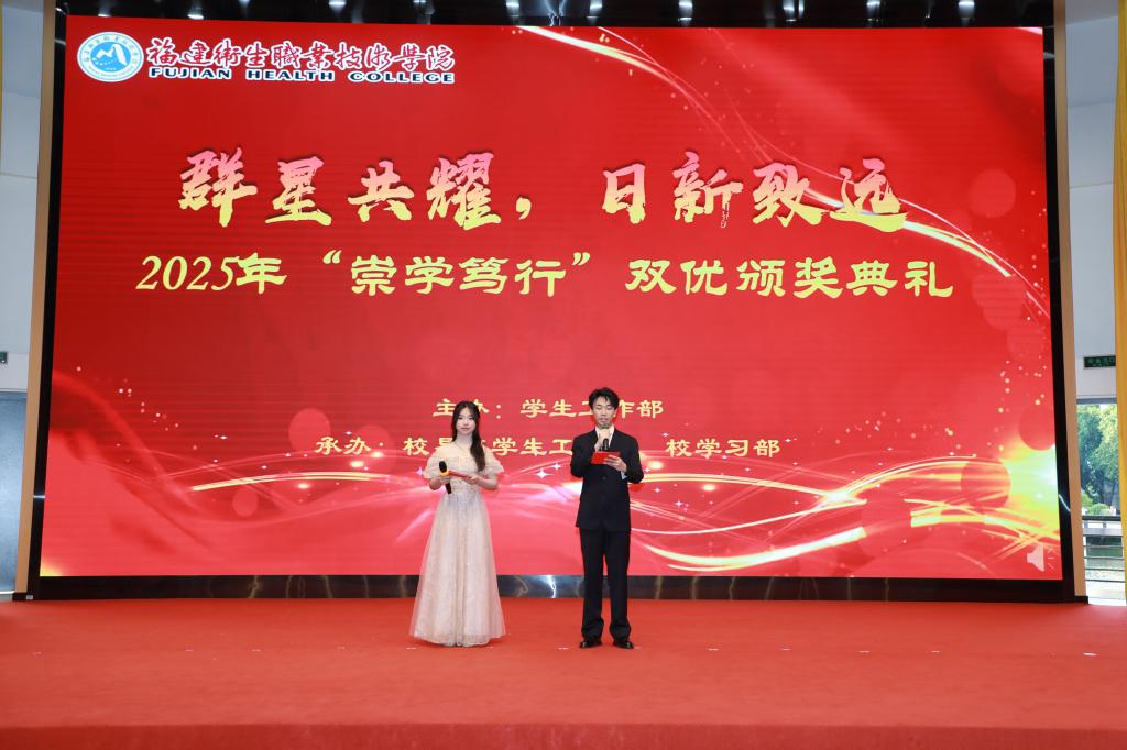5月13日晚,暮色輕垂,學(xué)校崇學(xué)廳內(nèi)燈火如晝,暖光流轉(zhuǎn)。校領(lǐng)導(dǎo)、相關(guān)職能部門負責(zé)人、二級學(xué)院黨委書記、輔導(dǎo)員及學(xué)生代表們踏著仁心湖畔棧道走來,衣袂間流轉(zhuǎn)著初夏的晚風(fēng)。當(dāng)主持人清越的嗓音劃破暮色,2025年“崇學(xué)篤行”雙優(yōu)頒獎典禮這場湖畔之約便在波光與星光的見證下,徐徐展開華章。
