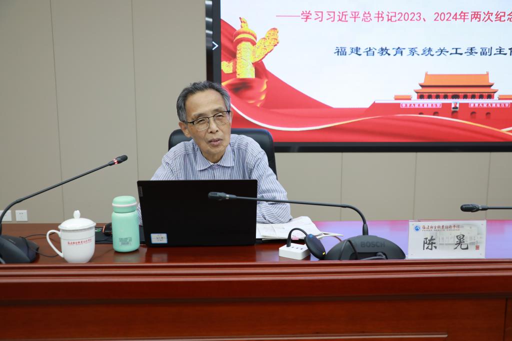 為深入學(xué)習(xí)貫徹習(xí)近平新時(shí)代中國特色社會(huì)主義思想,發(fā)揚(yáng)紅色傳統(tǒng),傳承紅色基因,引領(lǐng)師生繼續(xù)堅(jiān)定跟黨走、建功新時(shí)代,10月22日,我校關(guān)工委邀請(qǐng)福建省教育系統(tǒng)關(guān)工委主任陳晃走進(jìn)學(xué)校思政課堂,為校師生代表舉辦紅色精神專題講座,福建省教育系統(tǒng)關(guān)工委副秘書長、辦公室主任羅永倩陪同。校關(guān)工委主任嚴(yán)肅、副主任陳雄出席講座,校關(guān)工委、二級(jí)學(xué)院關(guān)工委、學(xué)生工作部黨支部、團(tuán)委負(fù)責(zé)人、輔導(dǎo)員代表和學(xué)生代表共100余人參加講座,講座由副校長、校關(guān)工委副主任黃銘珊主持。