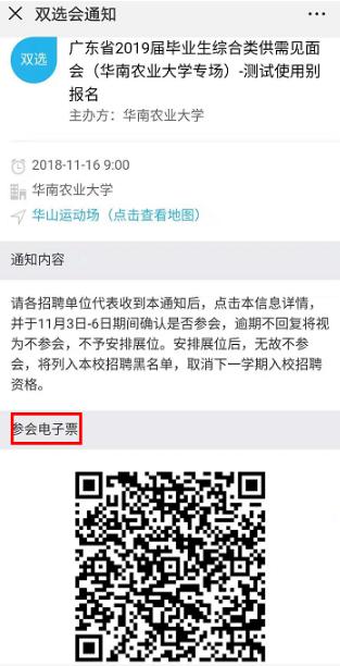 單位在收到參加現(xiàn)場招聘的通知后,點擊查看詳情,截圖保留參會二維碼,轉給現(xiàn)場參會人員