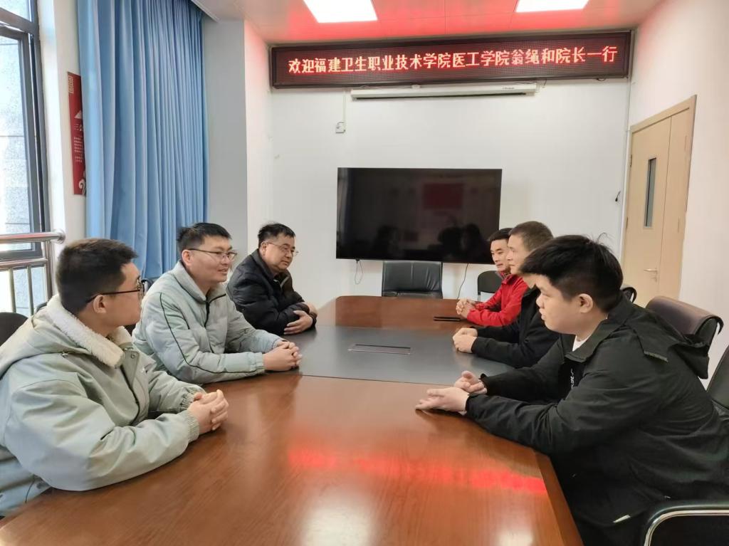 1月13日,醫(yī)學(xué)技術(shù)與工程學(xué)院院長(zhǎng)翁繩和、智能醫(yī)療裝備技術(shù)專業(yè)帶頭人鐘偉雄老師、醫(yī)用電子儀器技術(shù)專業(yè)教師林瑞鵬等一行三人走訪福州市晉安區(qū)醫(yī)院設(shè)備科,通過(guò)調(diào)研進(jìn)一步推動(dòng)校醫(yī)合作,拓寬畢業(yè)生高質(zhì)量就業(yè)渠道,優(yōu)化智能醫(yī)療裝備技術(shù)專業(yè)群的專業(yè)布局,實(shí)現(xiàn)人才培養(yǎng)與醫(yī)院需求的精準(zhǔn)對(duì)接。