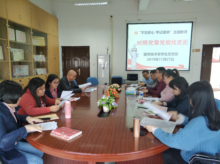 醫(yī)學(xué)技術(shù)系第一、第二、學(xué)生黨支部召開對照黨章黨規(guī)找差距專題會議
