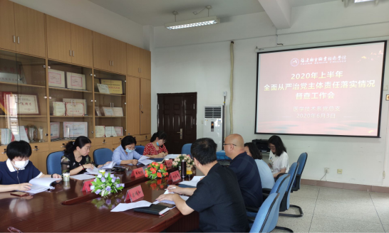 2020年6月3日上午,醫(yī)學(xué)技術(shù)系黨總支在系部會(huì)議室召開2020年上半年全面從嚴(yán)治黨主體責(zé)任落實(shí)情況督查會(huì)議,黃銘珊副校長(zhǎng)、黨委工作部組織干部科科長(zhǎng)黃小芳、紀(jì)檢監(jiān)察室監(jiān)察科科長(zhǎng)廖曉愿、管理系專職組織員張?jiān)葡家恍械綀?chǎng)巡查,醫(yī)學(xué)技術(shù)系領(lǐng)導(dǎo)班子成員、總支支委、各支部代表參加本次會(huì)議。