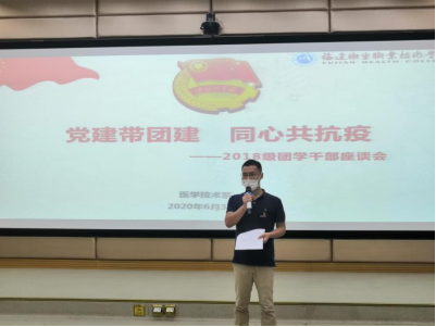 為進一步強化黨建帶團建,團建促黨建工作,提升團學干部思想意識,增強黨性修養(yǎng),6月30日,在建黨99周年之際,醫(yī)學技術系于實訓樓演播室召開“黨建帶團建,同心共抗疫”團學干部座談會。會議由系團總支書記曾慶才老師主持,系黨總支負責人邱滾忠副書記出席會議,系團總支副書記方新榮老師、各班輔導員、2018級團學各部門干部參加會議。
