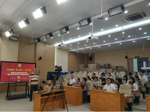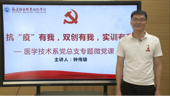 為貫徹落實(shí)黨中央關(guān)于常態(tài)化疫情防控的決策部署,讓黨旗始終高高飄揚(yáng)在疫情防控、返校復(fù)學(xué)、事業(yè)發(fā)展全過程全方位,醫(yī)學(xué)技術(shù)系黨總支于7月9日在實(shí)訓(xùn)樓三樓錄播室開展專題微黨課。本次微黨課圍繞《黨旗飄揚(yáng),凝心聚力,同共抗疫》主題開展,在校的黨員教師參與集中學(xué)習(xí),其余黨員師生在線參與學(xué)習(xí)。