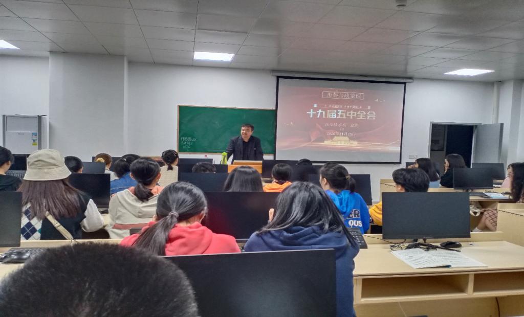 為了讓同學(xué)們更深入的了解十九屆五中全會(huì),提高同學(xué)們的知識(shí)素養(yǎng)和樹立崇高的理想,11月25日在醫(yī)技系209教室,醫(yī)學(xué)技術(shù)系主任翁繩和為20影像303、304班學(xué)生講授“形勢(shì)與政策”課。