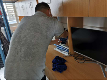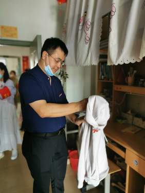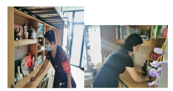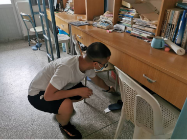 宿舍內(nèi)外都有老師們辛勤的背影,他們彎著腰,擼起袖子,不怕臟不怕累,用抹布仔仔細(xì)細(xì)的將桌椅、窗戶、床架柜子等擦拭一遍,不放過任何一?;覊m;廁所、浴室、陽臺、走廊......只為同學(xué)們返校時能有個整潔的宿舍環(huán)境??吹矫總€老師揮汗如雨、不辭辛苦的做好打掃工作,邱書記鼓勵大家說:“只要能讓同學(xué)們返校時住進(jìn)干凈整潔的宿舍,感受學(xué)校對他們的關(guān)心和關(guān)愛,哪怕我們再苦再累,流再多的汗也是值得的?!?