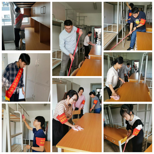 10月8日,醫(yī)學(xué)技術(shù)系組織全體黨員老師、入黨積極分子學(xué)生、團(tuán)學(xué)干部開展新生宿舍的打掃工作,大家以飽滿的熱情投入工作,認(rèn)真檢查每個(gè)宿舍的燈、桌椅等硬件設(shè)施的好壞情況,用抹布、拖把等打掃工具將分配到的一間間宿舍全面細(xì)致的打掃。用雙手為新生創(chuàng)造出舒適整潔的住宿環(huán)境,做到每一個(gè)角落光潔如新,纖塵不染,確保新生滿意的入住到宿舍中,增強(qiáng)新生的認(rèn)同感和歸屬感。
