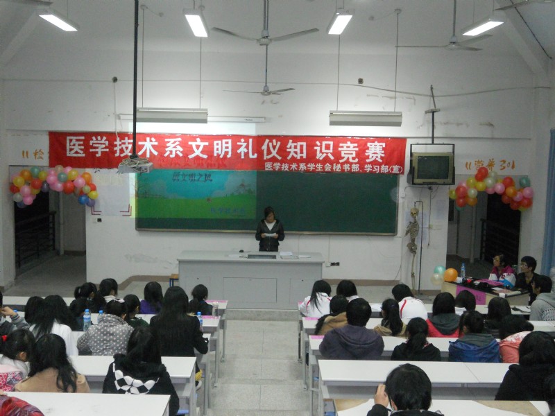 為宣傳普及文明禮儀知識(shí),弘揚(yáng)中華傳統(tǒng)禮儀,并加強(qiáng)大學(xué)生的道德修養(yǎng),醫(yī)學(xué)技術(shù)系學(xué)生會(huì)秘書部、學(xué)習(xí)部于2011年12月13日晚在系部二階教室舉辦“文明禮儀知識(shí)競賽”。