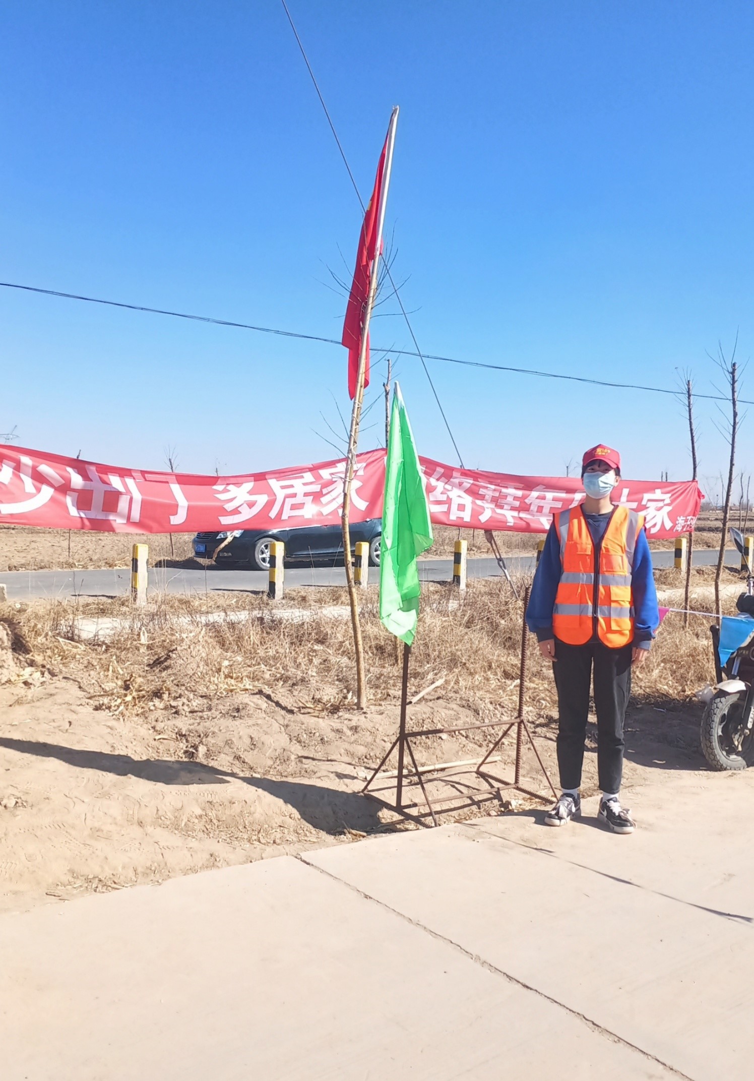 19檢驗301班馬玉珍同學自愿參加甘肅省武威市古浪縣張家沙河村的志愿活動在兩村之間路口阻止外來車輛和登記外來人員及車輛,很榮幸能成為以傳遞愛心的志愿服務 ,并宣傳疫情注意事項并攔截外來人員,和隊長、村內(nèi)的黨員們各家各戶一起提醒村民佩戴口罩、勤洗手、多通風等,此次過程中作為一個志愿者,在助人的同時,也是自助。學會與人溝通,學會關愛他人,也更深刻地領會到生命的好處。她感言道:作為大學生,我們不能養(yǎng)尊處優(yōu),應履行義務,肩負起時代賦予的職責。我相信,春日的馥郁花香就在轉角,嚴冬終會過去!