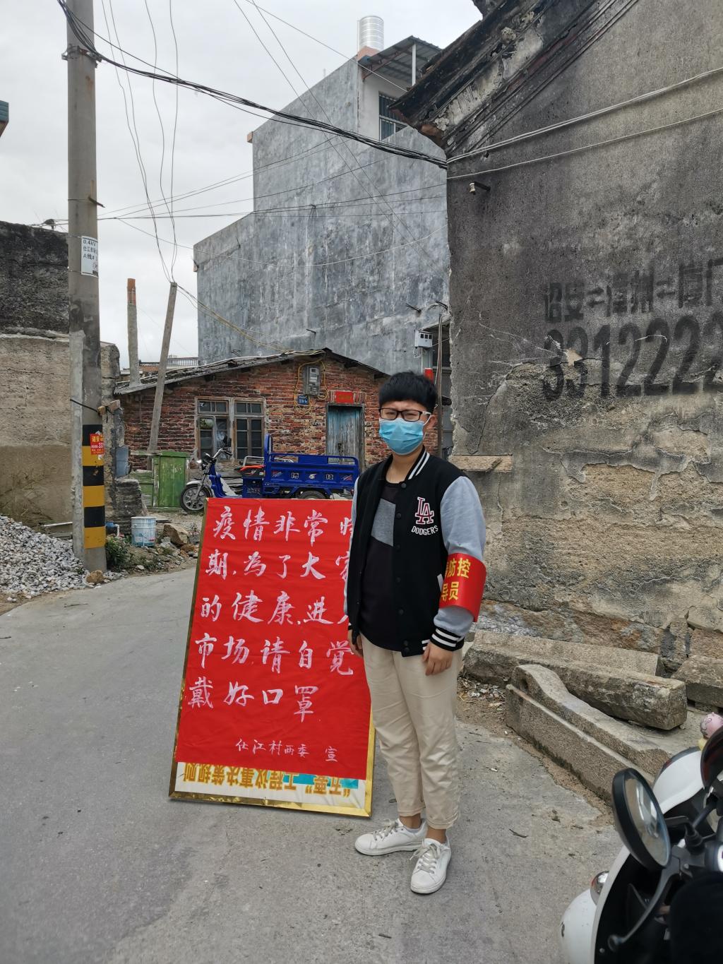 19影像301班沈曉棋同學在福建省漳州市詔安縣深橋鎮(zhèn)仕江村作為一名青年志愿者,在面對如此嚴重的疫情,自愿投入到戰(zhàn)斗中,共同戰(zhàn)“疫”!她在村里報名參加志愿服務,服從村里的安排。在村路口登記外來車輛并進行量體溫。她感言道:新冠肺炎時期,不去人流量大、人群聚集的地方。如果一定要外出,戴好口罩,做好防護,勤洗手,養(yǎng)成良好的個人生活習慣,保護自己也是保護他人。健康是福,平安是樂。我相信我們能夠很快的結束這場戰(zhàn)“疫”!武漢加油!中國加油!