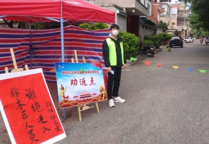 18設備301班張錦德同學在福建省漳州市漳浦縣綏安鎮(zhèn)朝陽社區(qū)參加疫情防控志愿服務活動時就與社區(qū)工作者一同走上了戰(zhàn)線最前沿,通過在街道路口勸返點測量過往群眾體溫、登記外來人員出入信息等形式,在疫情防控工作中貢獻了自己的一份力量。他感言道:國難當前群策群力責無旁貸,凝心聚力星星之火也可燎原,感謝所有為戰(zhàn)疫付出的人們,謝謝每個平凡的中國人!