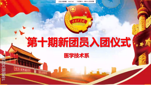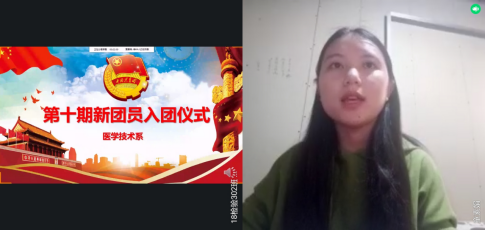 系團總支副書記江鵬同學作為本次會議的主持人,醫(yī)學技術系黨總支負責人邱滾忠副書記、系團總支書記曾慶才老師、副書記陳念文老師及各班輔導員,醫(yī)學技術系團學干部及30名新團員出席線上入團儀式。