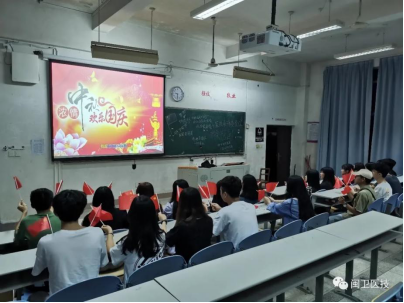 首先,團學干部們合唱《我和我的祖國》,向祖國表達深情熱愛之心,為中華人民共和國成立71周年獻禮。并通過在黑板上留言,抒發(fā)了愛國情感。