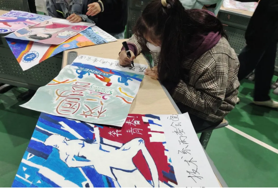 為了更好的賽程氛圍,同學(xué)們利用課余時間布置大本營,用自己的雙手繪制一張又一張精美的畫報,并為運動員們提供了豐厚的補給,幫助運動員們迅速恢復(fù)體力。除此之外,還裝飾了“驚鴻一瞬”照片墻和龍虎榜,記錄醫(yī)技師生運動會的精彩瞬間。