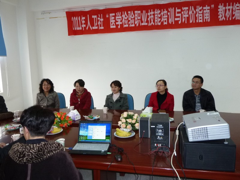編寫會上主編馬少寧主任介紹了《醫(yī)學檢驗職業(yè)技能培訓與評價指南》教材編寫的指導思想和思路,明確了編寫任務分工,強調(diào)了編寫教材的交稿要求、時間、負責人及互審、主審和定稿時間安排;各編委分組對教材編寫大綱、編寫體例進行了認真細致的討論。會議中與會代表還專程到學院參觀指導。