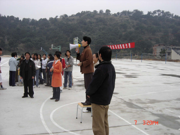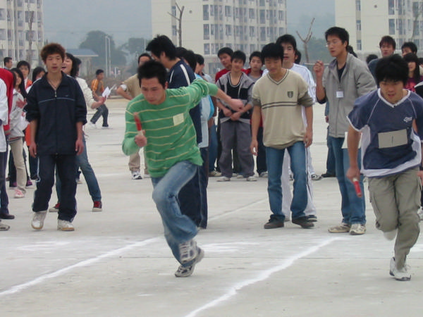 2006年3月7日下午體育部在運動場上舉行了往返接力賽,每班派男、女各一隊運動員參加。同學們在運動場上積極參與,啦啦隊在運動場邊高喊加油,氣氛異常熱烈。最后決出了一等獎一名,二等獎二名,三等獎三名。