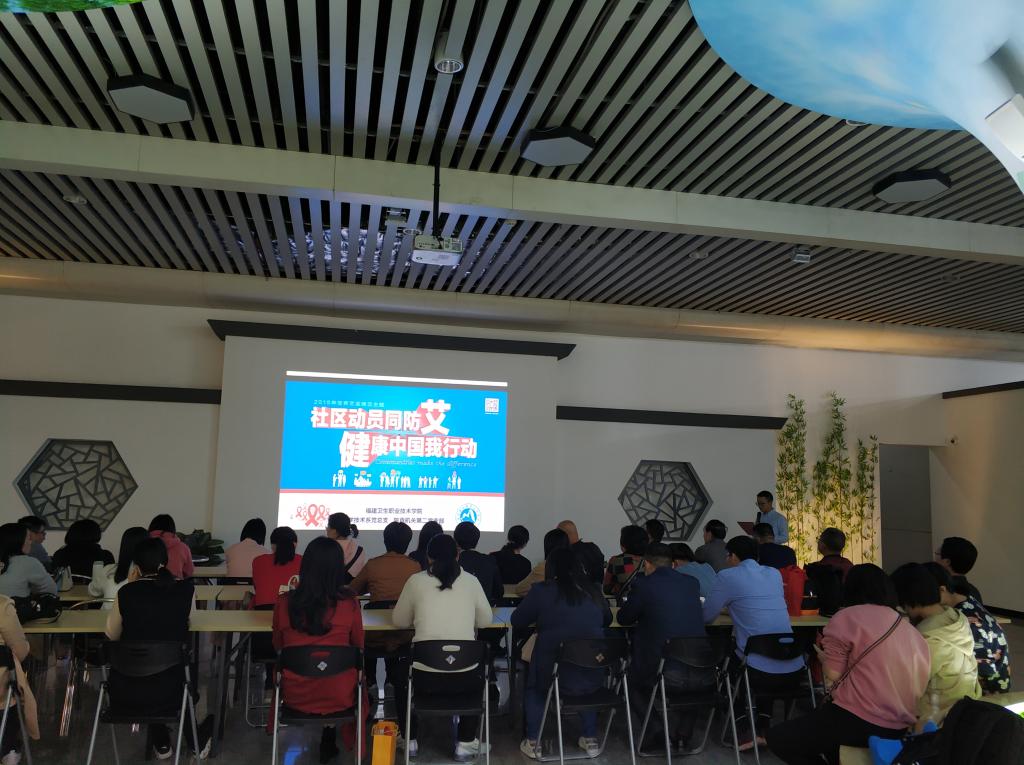 本著教育者先受教育的理念,福建衛(wèi)生職業(yè)技術(shù)學(xué)院50余名黨員師生首先在“八閩第一站”內(nèi)開展集中學(xué)習(xí),研讀《國務(wù)院防治艾滋病工作委員會辦公室關(guān)于做好2019年“世界艾滋病日”主題活動的通知》。學(xué)院副院長黃銘珊參加活動,并為黨員佩戴紅絲帶,勉勵黨員老師在教育教學(xué)工作中提升開展防艾工作的意識。同時,通過知識講授、視頻觀看等學(xué)習(xí)方式,進(jìn)一步鞏固和深化黨員師生艾滋防治知識。