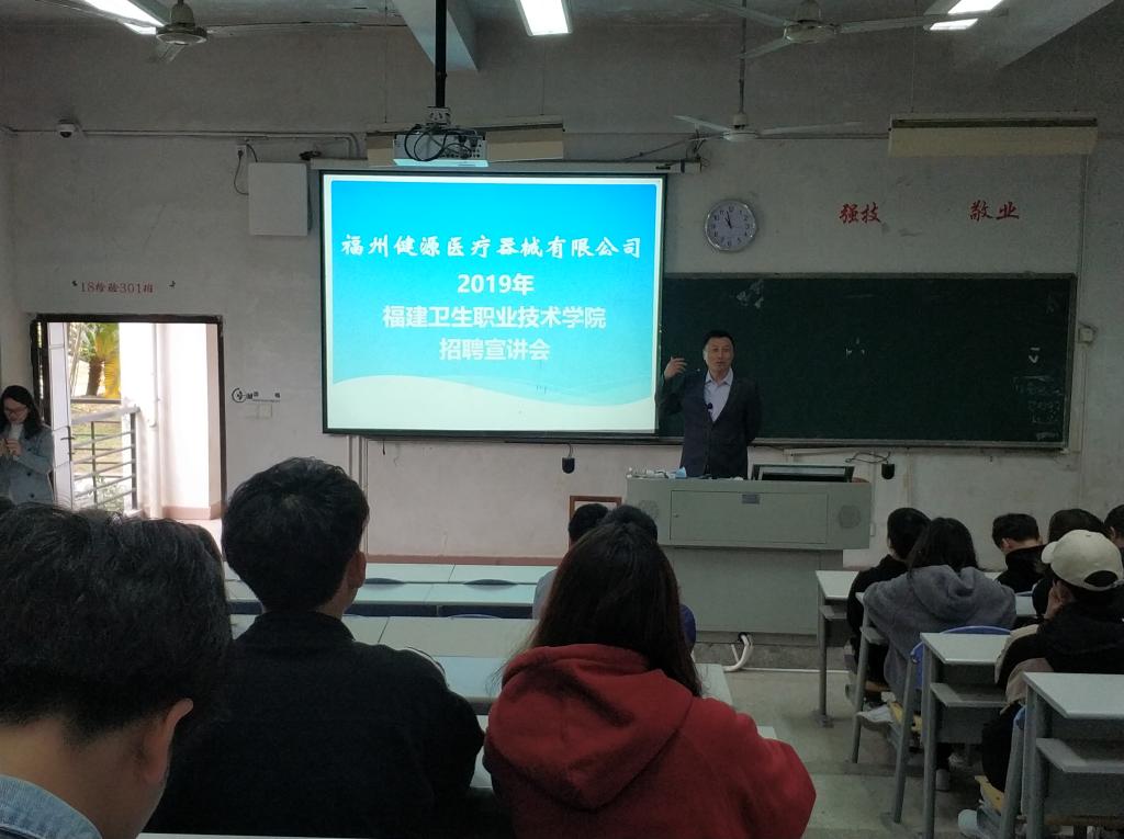 為更好地推進2020屆畢業(yè)生就業(yè)工作,12月21日上午,醫(yī)學(xué)技術(shù)系特邀福州金域醫(yī)學(xué)檢驗中心、福州博奧醫(yī)學(xué)檢驗所、福州健源醫(yī)療器械有限公司、福州艾迪康醫(yī)學(xué)檢驗所有限公司等4家企業(yè)先后在系部一階教室進行校園專場宣講會。