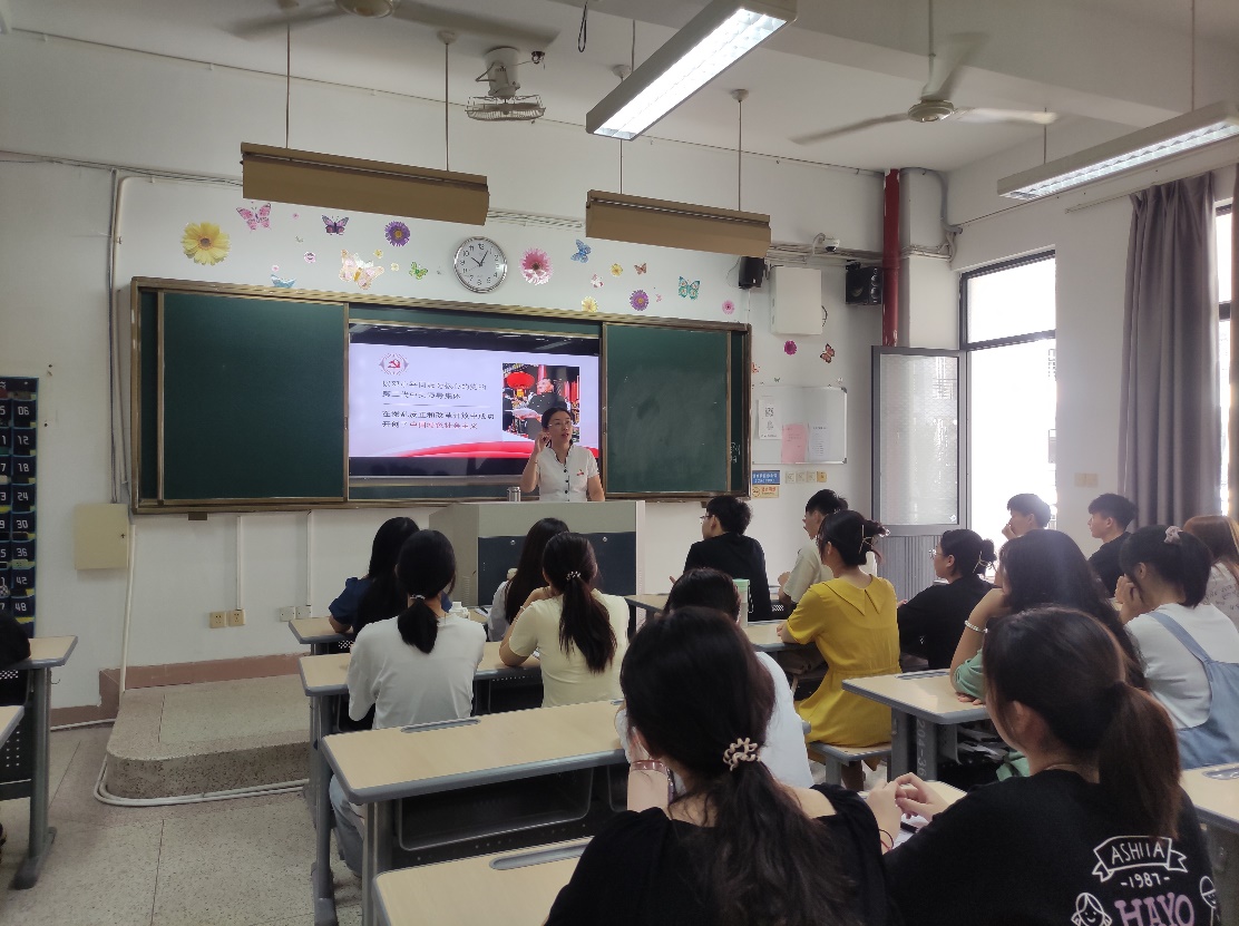 黃銘珊副校長圍繞“回望”“賡續(xù)”“借鑒”“展望”四個(gè)方面,講授了中國共產(chǎn)黨從小到大、由弱到強(qiáng)、從一葉扁舟到巍巍巨輪的壯大過程,經(jīng)歷腥風(fēng)血雨,卻一次次絕境重生,走過百年風(fēng)雨,卻長盛不衰、愈發(fā)枝繁葉茂的奧秘。結(jié)合直觀的視頻、詳實(shí)的數(shù)據(jù)、豐富的案例以及自身經(jīng)歷,她生動(dòng)地闡述了一百年來國家和社會(huì)在經(jīng)濟(jì)、文化、人民生活水平等方面取得的發(fā)展成就,引導(dǎo)同學(xué)們深入地領(lǐng)會(huì)了我們黨正帶領(lǐng)人民走的一條正確的發(fā)展道路。