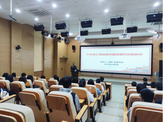 游鋒書記從接續(xù)奮斗實(shí)現(xiàn)中國(guó)式現(xiàn)代化、科學(xué)把握中國(guó)式現(xiàn)代化的重要特征、以青春之力為中國(guó)式現(xiàn)代化著筆增色等三個(gè)方面,深入闡述中國(guó)現(xiàn)代化建設(shè)的偉大歷程,詳細(xì)剖析中國(guó)式現(xiàn)代化的特征。他親切寄語(yǔ)同學(xué)們,要篤定信心跟黨走、腳踏實(shí)地練本領(lǐng)、挺膺擔(dān)當(dāng)向未來(lái)。